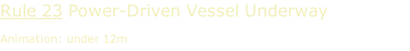 Rule 23 Power-Driven Vessel Underway  Animation: under 12m ColRegs Home>ColRegs>Lights & Shapes>Animations>Power-Driven Underway>Power Under 12m - Motor Boat 1 of power-driven vessels under 12m underway Power-driven vessel underway under 12m based on a motor boat showing an all-round white light instead of  masthead light and sternlight back to top Power-driven vessel - a bulk carrier Power-driven general Power-driven vessel under 50m - a passenger vessell Under 50m Power-driven vessel under 12m - a motor cruiser Under 12m Power-driven vessel under 7m & 7kts - an excursion boat Under 7m and 7 knots Air-cushion vessel - USN hovercraft WIG craft (Russian) Air-cushion WIG A passenger boat under 50m and a RFA Lengths of vessels